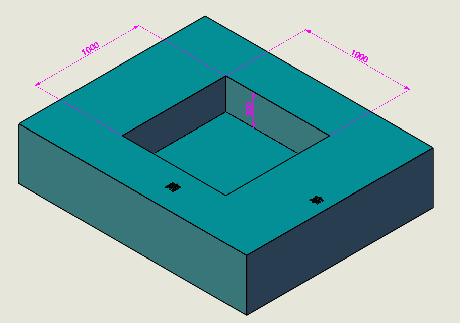 3、按下圖澆筑混凝土地基,外形尺寸(長X寬X高)=100CM*100CM*60CM,露出地面高度30CM,預(yù)埋四顆M12*120mm鐵膨脹螺栓,螺栓露出地基高度30mm左右,中心距550X445mm,需保持螺栓垂直,不能有歪斜情況。