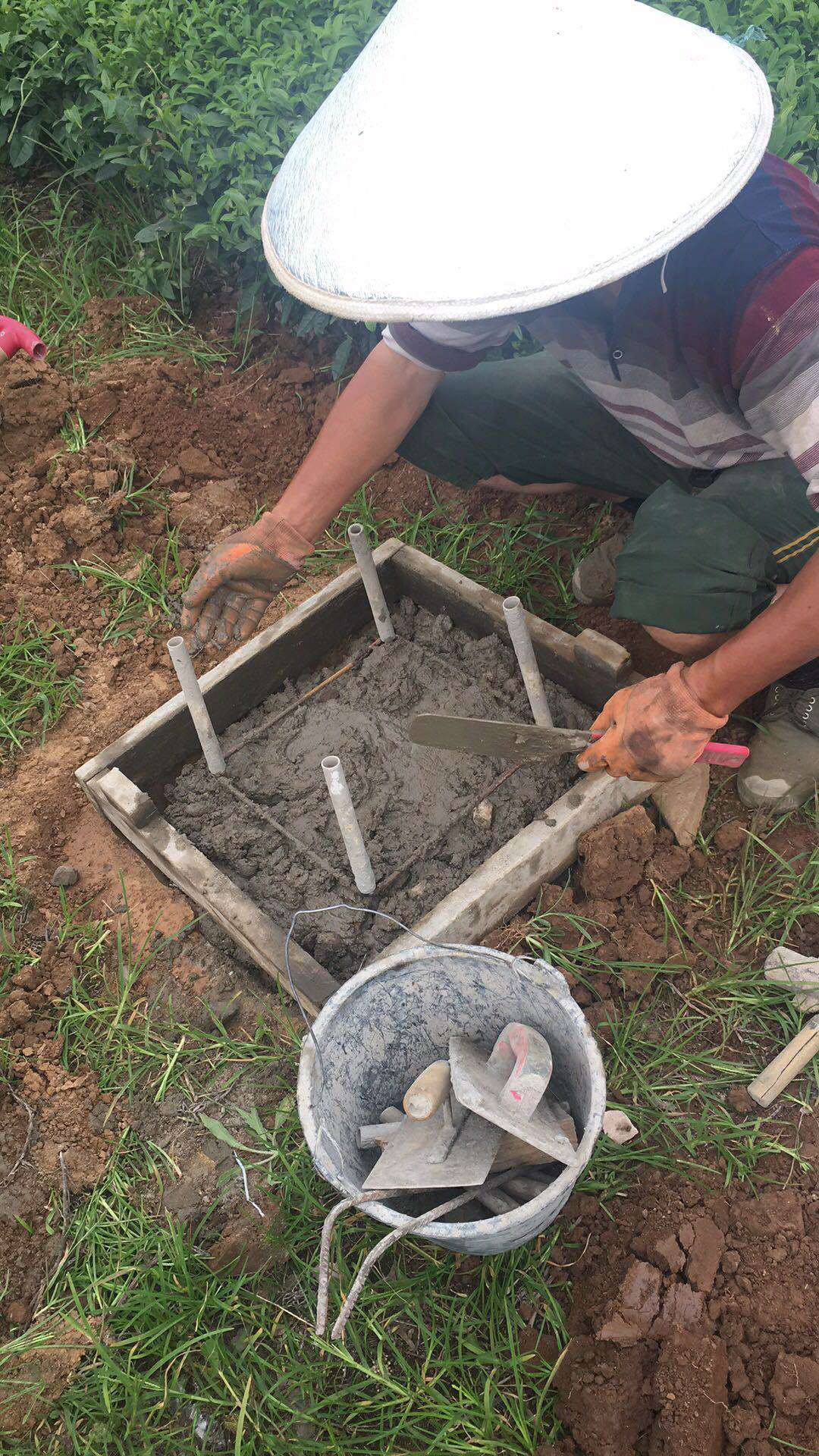 3、把地籠放到基坑內(nèi),倒入攪拌均勻的砂石